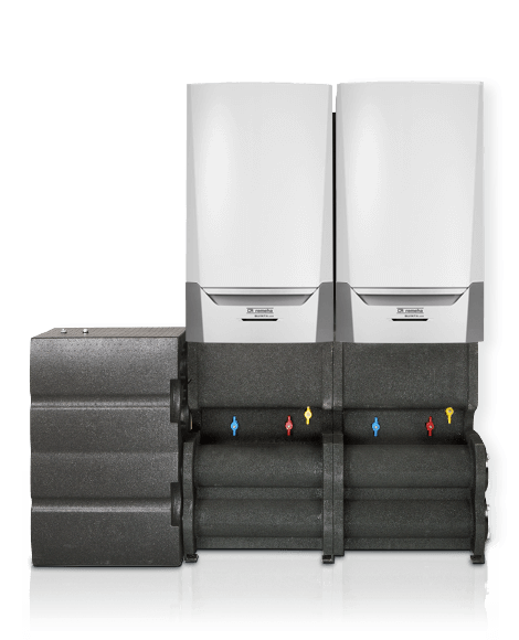 Een zelfbouw cascade-installatie, bestaande uit meerdere toestellen, is ook mogelijk. Voor uw specifieke situatie, bepaalt u dan zelf de positie van de ketels en de leidingloop. Om de realisatie daarvan te vergemakkelijken, kunt u zelf een cascadesysteem samenstellen.